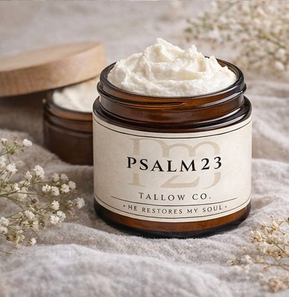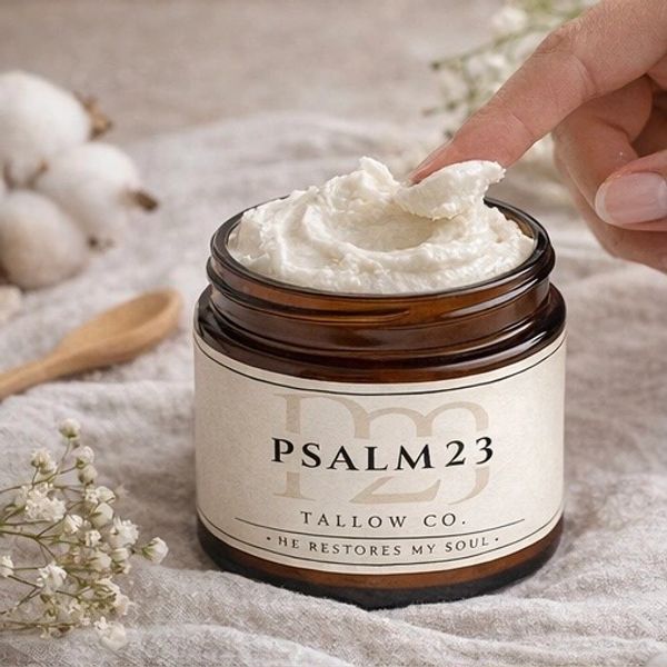 We are Psalm 23 Tallow Co., a small, faith-led family business devoted to creating clean, nourishing skincare.